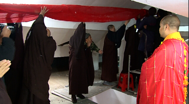 2014年11月29日上午(农历十月初八),江西省永修县云居山真如禅寺为新落成的西禅堂、韦陀殿及丈室举行上梁法会。纯闻法师主持了法会,为新建殿堂逐一洒净,随着法师一声“起”字,三条主梁由大众高高举起,安装定位完毕。常住僧众150余人和善信大众300余人随喜参加了这次殊胜圆满的法会。