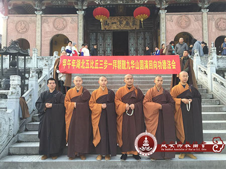 湖北五比丘三步一拜朝觐九华山圆满功德回向法会举行
