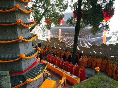 达州德化寺举行西方三圣像开光暨船福和尚圆寂传供法会迎请诸山长老