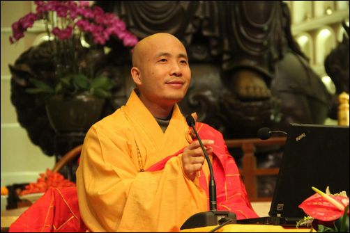 僧众恭请达照法师为大众讲法开示