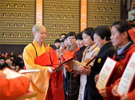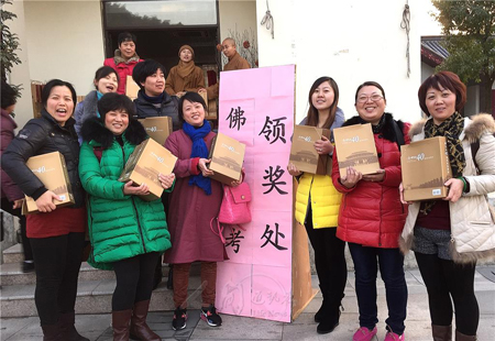 江苏“宜兴大觉寺首届佛学会考”于2015年1月3日举行颁奖典礼,在参与弥陀法会信众的观礼下,大觉寺都监妙士法师为23位考取满分的得主颁发奖状及星云大师著作《百年佛缘》套书。