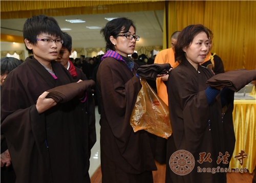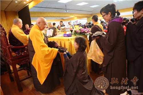 法师们教授受戒的戒子们搭衣 摄影:顿宏