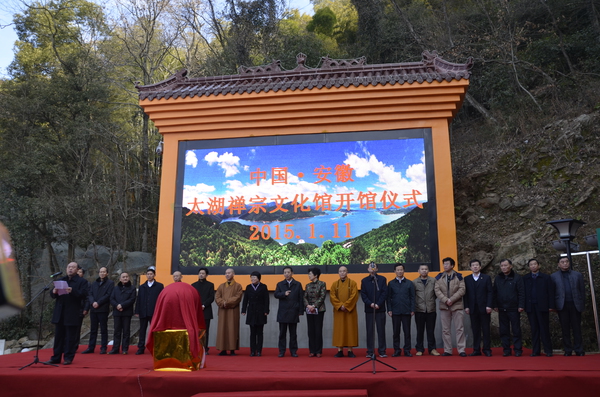开馆仪式由太湖县政协副主席、太湖县委统战部长殷书林主持,安徽省人大常委会原副主任朱维芳,安徽省佛教协会副会长兼秘书长智文大和尚,安庆市政协副主席、安庆市委统战部长鲁德,太湖县政协主席聂万健分别发表讲话。他们在讲话中,对禅宗文化馆的建成表示热烈祝贺,认为寺院创办文化馆创意新颖,是顺应当前形势、复兴中华文化的一个实在举措,对于发展安徽旅游文化事业,促进和谐社会建设,传承和繁荣禅宗文化,推动佛教的健康发展都必将发挥积极作用。太湖县政协主席聂万健代表县四大班子致辞,向与会来宾表示热烈欢迎,并表示将以禅宗文化馆开馆为契机,进一步发掘和弘扬具有悠久历史的太湖禅宗文化,推动文化的大发展大繁荣。
