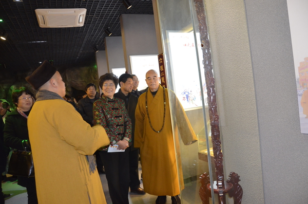 “欣逢盛世,政通人和”。出席本次开馆仪式的领导嘉宾及高僧大德有:安徽省人大常委会原副主任朱维芳,安徽省发改委党组成员、巡视员余群,安徽省人大常委会教科文卫工委副主任韦大伟,安徽省委统战部研究室主任李传玺,安徽省委统战部宗教处主任卢旭东,中国佛教协会副秘书长、安徽省佛教协会第一副会长、九华山佛教协会会长慧庆大和尚,安徽省佛教协会副会长兼秘书长智文大和尚,安庆市政协副主席、安庆市委统战部长鲁德,安庆市政协副主席洪爱敏,安庆市委统战部副部长、宗教局长张旺牛,安庆市旅游局副调研员詹志高,安庆市文广新局社文科科长曹元勋,太湖县委副书记、太湖县政府县长程志翔,太湖县委副书记朱小兵,太湖县政协主席聂万健,太湖县人大副主任吴朝良,太湖县政府副县长胡浩民,太湖县政协副主席、太湖县委统战部长殷书林,太湖县政协副主席蒋卫东,花亭湖风景区管理处主任汪从永等。