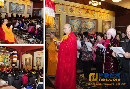 大众皈依暨传授五戒活动在觉沃佛前举行,念顺法师为信众传授三皈五戒后,期许大众能够真正潜心学习体认佛陀所说教理,以菩提之心,弘扬正法、服务社会。