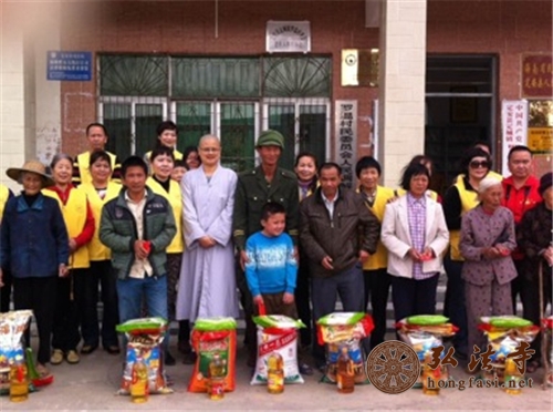 上午,由成道法师带队,分赴海口市187医院和海口市的三门坡镇、灵山镇和府城镇,分别给每个孤寡老人送上大米、食用油、粉丝、腐竹等慰问品和每人两百元的红包。成道法师还特地赴海口市187医院看望贫困重症患者,并捎去5000元慰问金。