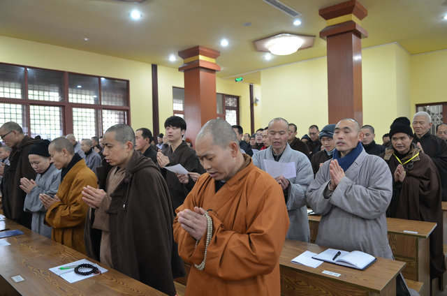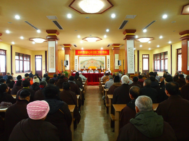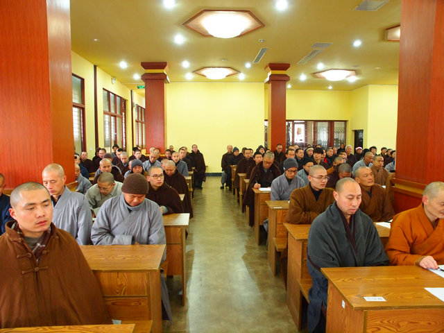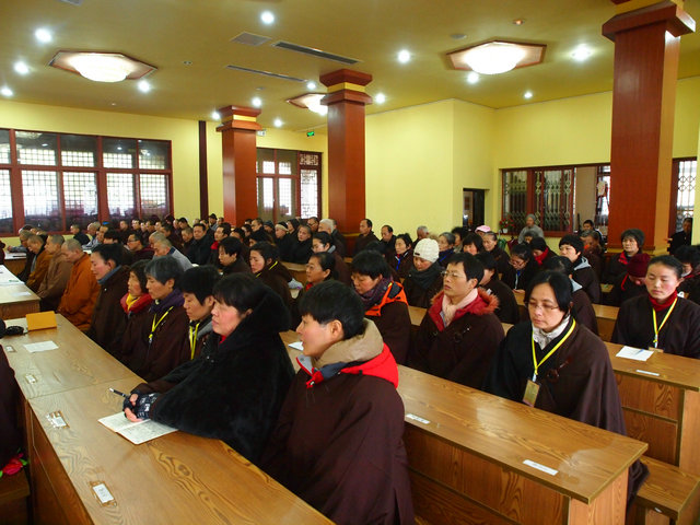 本耀法师主持开学典礼 唱《三宝歌》 唱《三宝歌》 延续法师开示 德亮法师开示 定圆法师开示 宏净法师开示 大安大和尚开示 学员聆听 学员聆听 开学典礼现场
