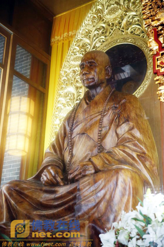 佛源老和尚纪念堂中以古木雕刻的老和尚法像