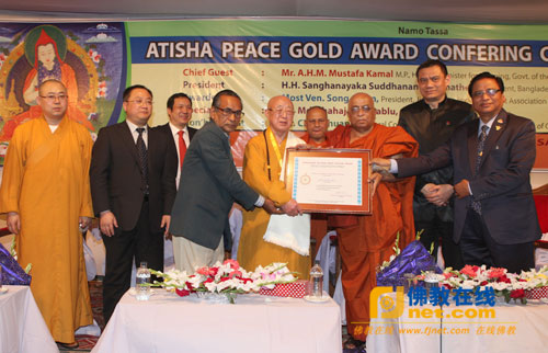 孟加拉国佛教复兴会授予松纯长老“阿底峡大师世界和平金奖”