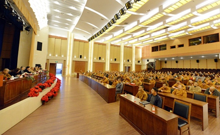 邱平海局长在讲话中,对佛学院在新学期井然有序的开展各项教学工作予以肯定,并提出了四点要求: