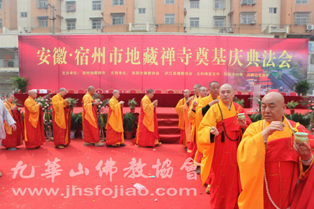 2015年3月29日,安徽省宿州市地藏禅寺隆重举行奠基庆典法会,来自江西、景德镇、六安、阜阳、滁州、马鞍山、庐江县、肥东县、佛教界高僧大德及信士檀越千余人共襄盛举。象征此具有千年历史的古寺,即将展开新的时代貌,重新担负弘法渡众的使命。