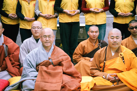 在场的韩国居士合掌一起见证此庄严时刻