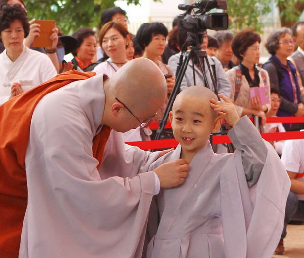 2015年5月11日,位于韩国首尔的曹溪寺举行童子僧剃度仪式,迎接即将到来的佛诞节,一共有9名韩国儿童接受了剃度。