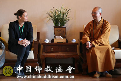 2015年5月9日下午,中国佛教协会会长学诚法师在北京龙泉寺会见荷兰(国家)佛教电视台台长拉伊娅·舒尔芙女士一行。
