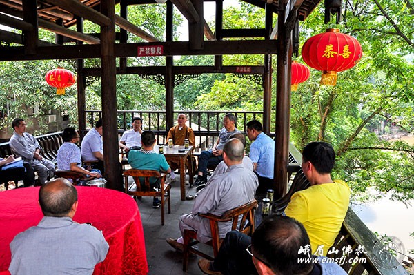 考察结束后,双方在柳江镇召开协调会。永寿法师介绍了峨眉山佛协恢复重建光明寺之殊胜因缘,洪雅是三昧水忏的创制者唐代悟达国师和峨眉山佛协老会长宽明法师的故乡,柳江也是峨眉后山、普贤菩萨道场,更重要的是当地政府的支持和重视。