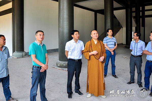 峨眉山佛协会长永寿法师陪同政府主要领导考察光明寺各大殿堂