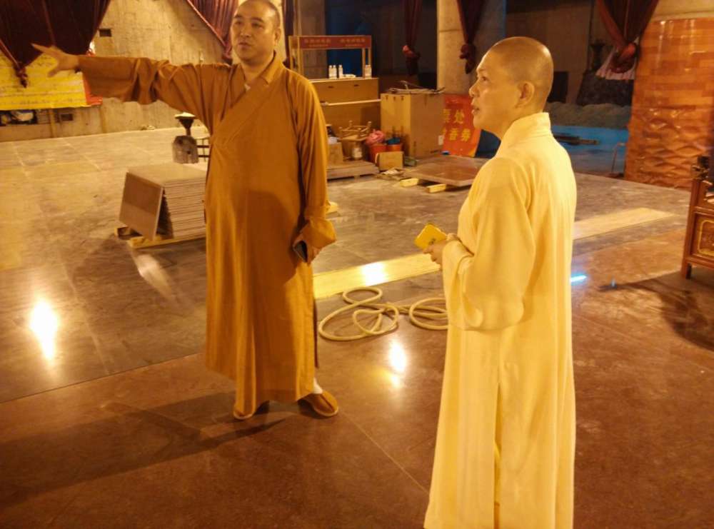 静安寺方丈慧明法师向如意法师介寺院基建情况