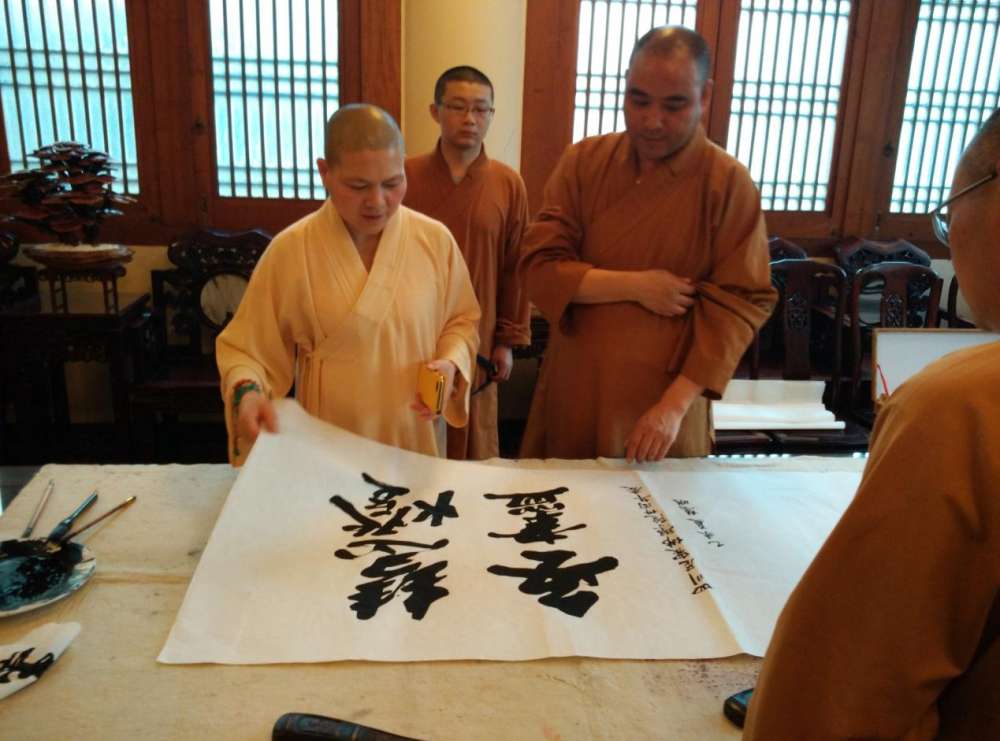慧明法师现场题写“慧灯无尽”四个大字