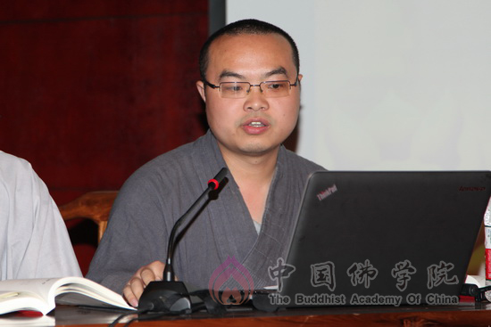 中国佛学院有5位法师参加本届论文发表会,他们分别是:2014级博士研究生理净法师、可潜法师,2013级硕士研究生道悟法师、来浩法师、恣振法师。理净法师发表论文题目为《华严金师子章略考》;可潜法师发表论文题目为《法华经六番神咒研究之二——勇施菩萨所说咒》;道悟法师发表论文题目为《解斋:从回向到盛会——以八关斋戒为例》;来浩法师发表论文题目为《略论药师经中“国无女人”》;恣振法师发表论文题目为《异部宗轮论述记典籍考》。