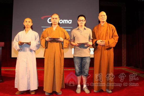 北京佛教文化研究所常务副所长怡学法师为优秀论文奖获得者颁奖