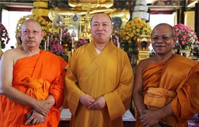 印顺大和尚赠本焕长老法相与泰国代僧王颂德•帕摩诃拉查曼克拉赞长老。摄影:顿俊