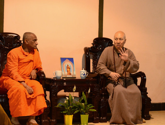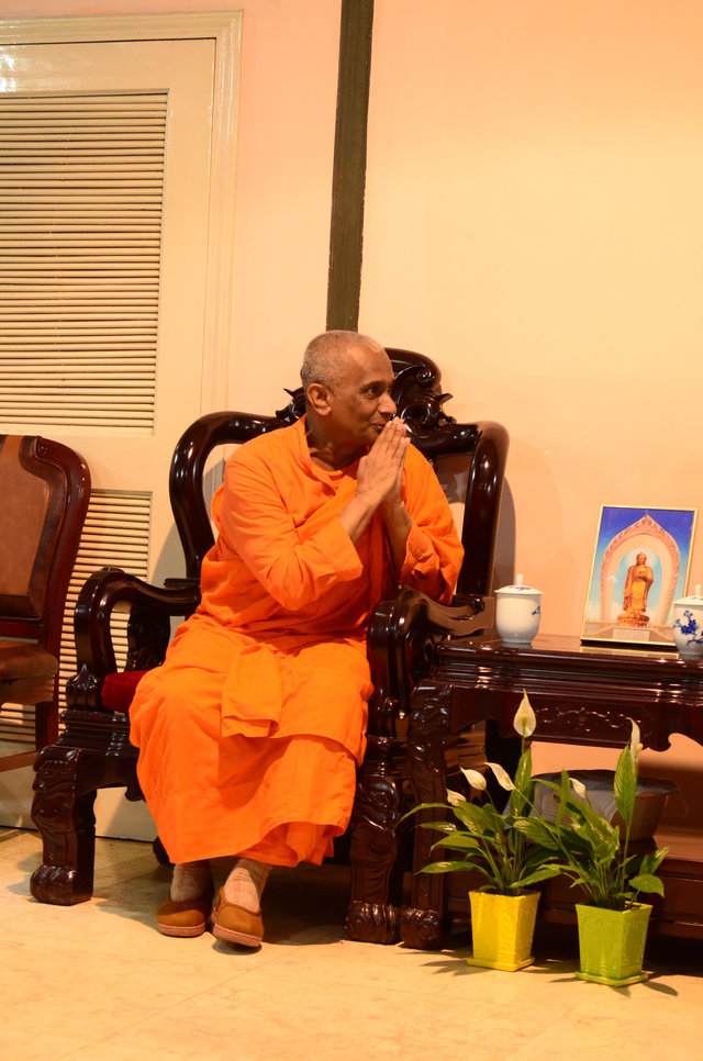 客人中的一位汉地比丘问,实相念佛、观想念佛能否做到。大安法师回答,念佛有四种,一种是实相念佛,相当于宗门下的念自性天真佛,这不是我们能做得到的。一种是观想念佛,就是观想西方极乐的依正庄严,日观、水观、地观、宝树观等(《观无量寿佛经》里面的十三观),这也不是我们能观得起来的。因为那个境界太细微,我们心太粗,神识飞扬。还有一种是观像念佛,观阿弥陀佛三十二相八十随形好,有顺观、逆观,甚至还要观他的报身,六十万亿那由他恒河沙由旬,这根本不是我们的概念,也无法下手。所以有一个方便,就是持名念佛,即念南无阿弥陀佛名号。这个名号叫万德洪名,阿弥陀佛把他自证的一切功德都凝聚在这句名号里面。你执持名号,开始有能念和所念,是以众生心忆佛念佛,最后你念得功夫得力了、相应了、功夫成片了,乃至得事一心不乱、理一心不乱了。理一心不乱就是能念所念打成一片,这时候就契入到观想和观像里面去了。(正如印光大师在《弥陀圣典序》中所说:“果能志心持念,念到全心是佛,全佛是心,心外无佛,佛外无心,无念而念,念而无念,心佛两彰而复双泯时,则实相妙理觌体显露,西方依正彻底圆彰,即持名而深达实相,不作观而亲见西方。”)持名念佛即使没有得一心不乱,在散乱心状态当中,你只要具足深信切愿,也能蒙佛接引往生净土。如果你执持名号,心很清净,得一心不乱,你可以往生到极乐世界的方便有余土,乃至实报庄严土。