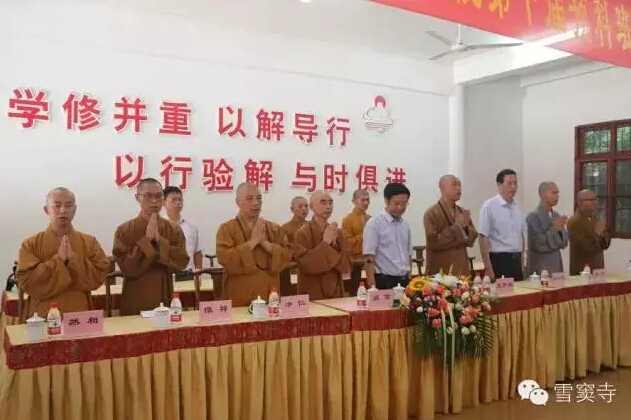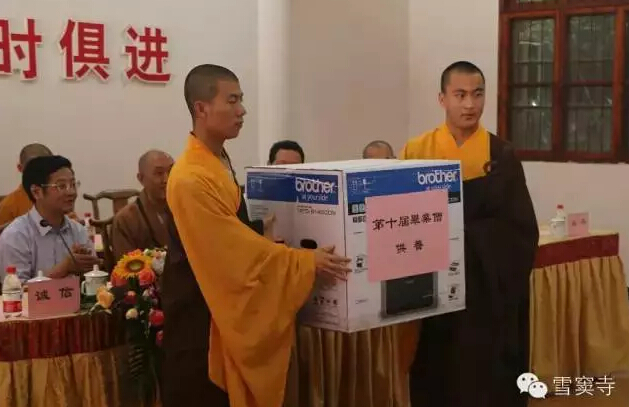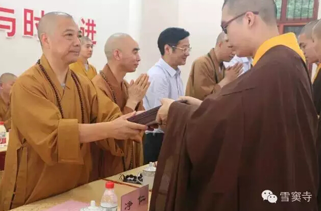 最后,许伯强副局长对学僧提出,希望学僧们鉴定信仰,当好爱国爱教的僧人,爱国爱教不是口号,是实实在在的内涵和要求,爱国是前提,爱教是立僧之本。弥勒佛学院20年办学,不仅提高了雪窦寺自身僧人的文化和佛学素质,还为佛教界输送了一批又一批的僧伽人材。希望毕业学僧在今后修学和弘法实践中,不忘师恩,知恩报恩,以弥勒菩萨的“五心”;慈悲心、欢喜心、自在心、忍辱心、广大心,上求佛道,下化众生,启迪智慧,净化人心,服务大众,回馈社会。