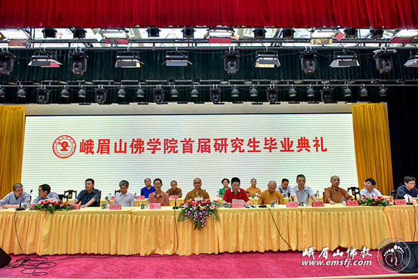 2015年6月27日,峨眉山佛学院首届研究生毕业典礼在大佛禅院峨眉讲堂举行。四川乐山市民宗局局长刘碧友、副局长魏梅,峨眉山市民宗局局长耿学康,峨眉山风景区宗教局副局长袁纲,中国佛教协会副会长、峨眉山佛学院院长永寿法师,四川省佛协副会长智海法师,四川省佛协副会长、峨眉山佛协副会长演法法师,四川省佛协秘书长王立军、副秘书长刘源,峨眉山佛协副会长宏开法师,研究生导师向学法师、圣凯法师、魏道儒教授、黄夏年教授、陈兵教授、段玉明教授、傅新毅教授,首届十二位毕业的研究生以及峨眉山佛学院全体师生参加典礼。典礼由峨眉山佛学院副院长隆藏法师主持。