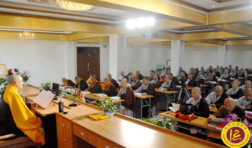陕西扶风法门寺佛学院沿用传统升大座讲经模式授课