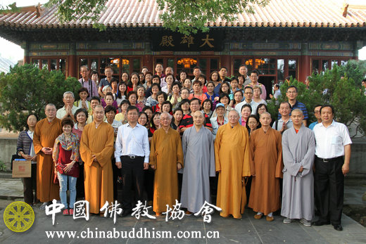 座谈结束后,双方互赠礼品并在广济寺大雄殿前合影留念。