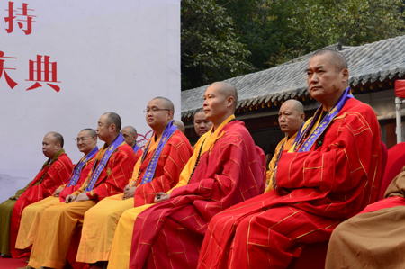 随后,在山门外的广场上举行了隆重的晋院庆典,各级领导、大德先后致辞。庆典仪式首先有请济南市长清区政府副区长李廷正区长现场致辞:今后灵岩寺能在弘恩法师的带领下,不断加强自身建设,努力提高寺院僧众的整体素质,引导信众,树立正信正行,为长清区的和谐发展作出新的贡献。