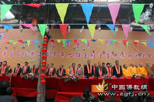 今逢盛世,盛世修佛,适逢吉日,因缘殊胜,龙天欢喜。2015年11月2日,云南楚雄州牟定县化佛山华圣寺隆重举行大雄宝殿全堂佛像开光法会。