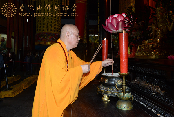图12:道慈大和尚在佛顶山慧济禅寺大雄宝殿敬香
