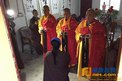 受芜湖市准提寺今成法师邀请,江西九江无量寿寺常福法师、东林寺常证法师、报国寺道祥法师及城灵寺演西法师、无量寿寺演亲法师一行五人于11月18日抵达芜湖准提寺,于2015年11月19日上午予50余位佛子传授三皈五戒菩萨戒,其中常福法师为得戒和尚,常证法师为羯磨阿阇梨,道祥法师为教授阿阇梨,演西法师和演亲法师为引礼师。