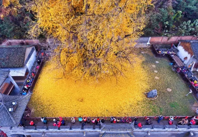 原标题:千年古刹银杏树网络走红之后 游客蜂拥而至