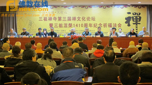 2015年11月26日(农历十月十五日)是中国禅宗三祖僧璨大师涅槃1410周年纪念日,安徽省天柱山三祖禅寺举行祈福法会隆重纪念,并主办召开第三届禅文化论坛。
