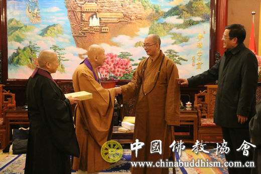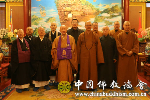 2015年12月14日下午,日本临济宗妙心寺派灵云院住持则竹秀南长老一行6人拜访中国佛教协会,受到中国佛教协会会长学诚法师、副会长演觉法师的热情接待。张琳副秘书长等陪同会见。