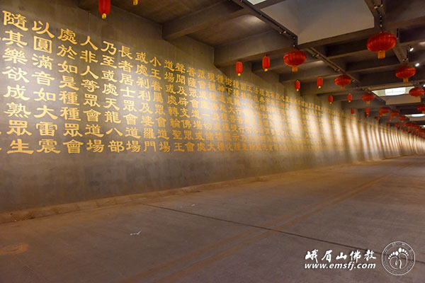 2016年1月23日,大佛禅院全长近五百米的加持大道落成。该加持大道贯通东西大门,由两面经墙及隧道顶部构成,两面经墙分别印《金刚经》《普贤行愿品》,近11000字,经文采用隶书,每字半米见方,涂以金漆,道顶饰以灯笼、射灯,当灯光照亮,经文金光闪耀,普照十方。查现有资料,单一经文之经墙尚未见出右者,大佛禅院经墙或为当世最大之经墙。