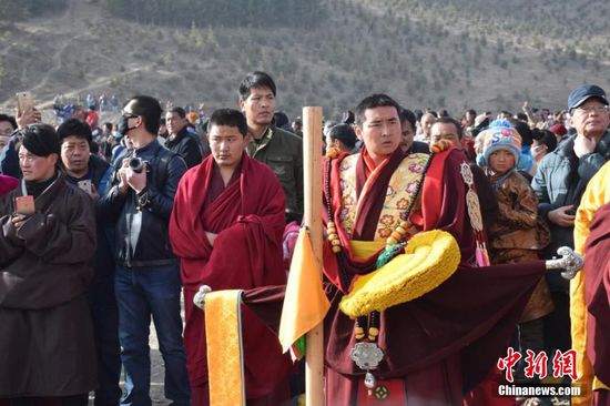 2016年2月20日,农历正月十三,有着“世界藏学府”之称的甘肃拉卜楞寺举行了一年一度的正月晒佛节。当天,伴着蓝天白云和温和的阳光,覆盖在巨幅佛像唐卡上的黄色丝绸缓缓拉开,巨大佛像出现在拉卜楞寺前的晒佛台上,引得数万藏族民众及游客纷纷赶来瞻仰神圣佛容。 拉卜楞寺位于甘肃省甘南藏族自治州夏河县,是藏传佛教格鲁派六大宗主寺院之一,始建于1709年,迄今已有300多年历史。每年自农历正月初三开始,拉卜楞寺都要举行一年一度的正月法会,晒佛法会是正月法会的重要内容之一。