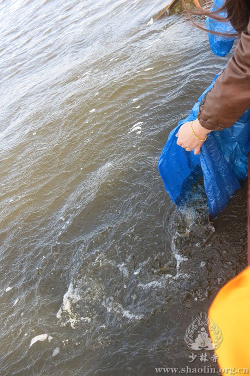 法师及护法居士将生物放归自然