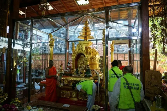 近日,白瀑寺千亩万生园朝圣放生团在抵达斯里兰卡首都科伦坡后。首先前往水上寺,礼拜释迦牟尼佛发舍利,并举办小规模放生活动。