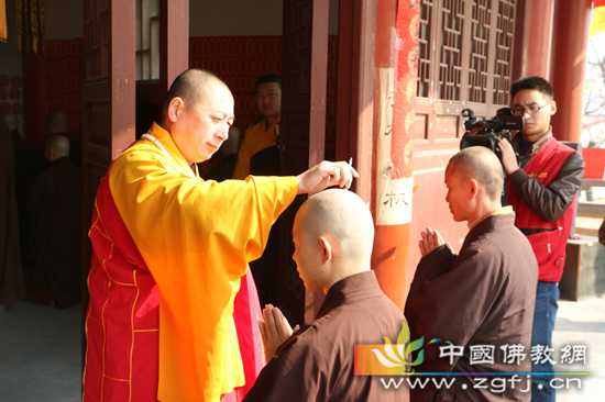 3月21日上午举行传戒仪式,大众迎请法师,赞三师,法师为参加仪式的新戒子剃度,传授沙弥戒。众佛子开始了续佛慧命的新生活,持戒、实修、闻法、听经,忏悔业障,洗涤尘垢,恢复“清净法身”。