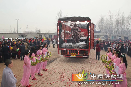 3月20日上午8:00,二祖匡教禅寺山门外广场上人山人海,鞭炮齐鸣、锣鼓喧天,善男信女欢喜雀跃,浩浩荡荡从二祖匡教禅寺出发,列队恭迎弥勒尊佛和韦陀菩萨圣像。成安县宗教局李志刚局长及县各级领导一路视察治安状况。