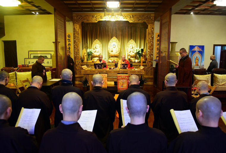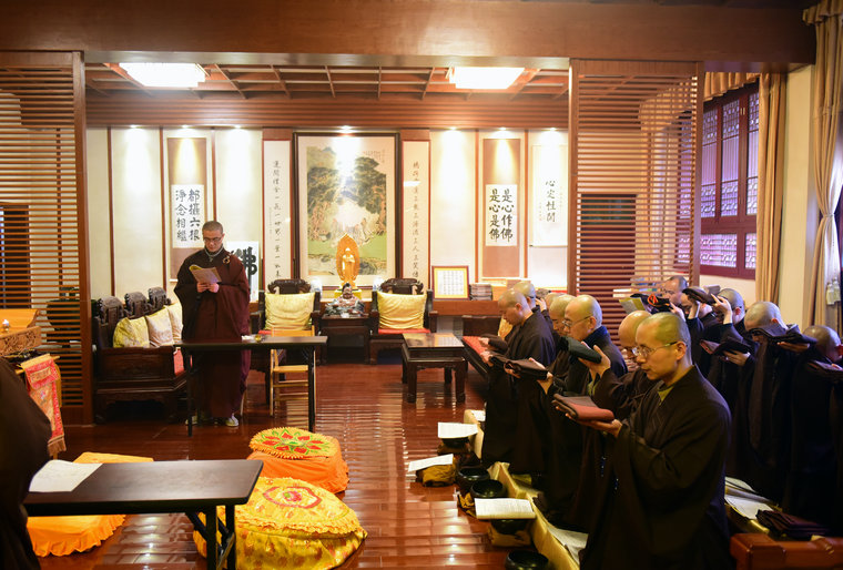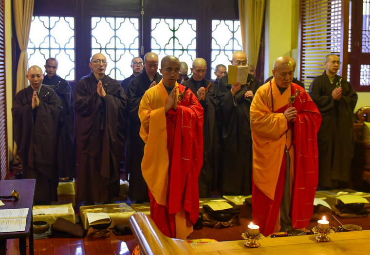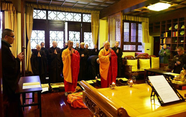 2016年3月23日上午,农历二月十五,由东林寺方丈大安律师为得戒和尚,监院德亮律师为十戒阿阇黎,东林祖庭在方丈室为本寺院的14位沙弥师举行了沙弥十戒传授仪式。