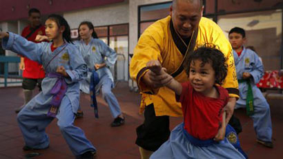 [原标题]学功夫从娃娃抓起美国洛杉矶华埠传承少林文化