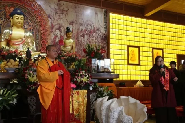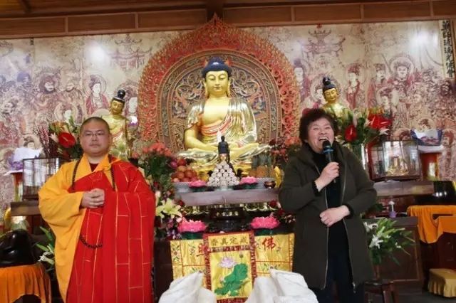 27日上午,妙华法师又带领四众弟子,依循《观世音菩萨祝圣仪规》,如理如法地举办了祝圣法会。在此后的开示中,法师着重赞叹了护法居士们的种种真诚付出,并且分别邀请功德主、文宣组、义工组的代表居士发表了各自的护法感言。牛居士的谦逊率真、林居士的锐意进取和单居士的无私奉献,令与会信众赞叹折服,数度报以热烈的掌声。