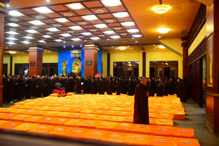 12日下午3时,在悦众师的引领下,与会四众齐唱《赞佛偈》,随后,经行念佛正式开始。香光讲堂一时梵音弥漫,清畅哀亮的东林佛号荡漾在寺院上空。24小时的经行念佛中,与会大众怀着舍生死、出轮回、生极乐的道心,头顶青露,脚踩莲花,相续着这句万德洪名,场面震撼人心。
