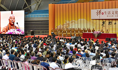 江苏宜兴市体育馆3500位民众欢喜聆听星云大师传授禅的简单生活方法。(图片来源:凤凰佛教)