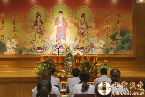 上午8时30分,上海会龙寺首座照闻法师为学员们开示。紧接着,我寺住持慧平法师为学员们亲自教授梵呗《炉香赞》,并且为学员们讲述佛教常用之法器的敲打方法。慧平法师说:“法器为龙天之耳目,如法敲打可获不可思议之功德。”学员们认真的听着,并跟随着法师们一起唱诵,现场梵音缭绕,庄严祥和。