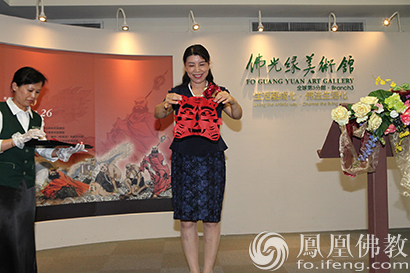 戴舫除了捐赠“十八罗汉”作品给佛光缘美术馆典藏,也现场展现“神剪”奇技,一张红纸、一把小剪,才数分钟,就剪出活灵活现、喜气洋溢的老虎。